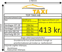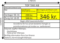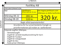 Designa din egna prislista i vår designer nedan. Vi tar ingen startavgift och det kostar inget extra för att ha med din logga på dekalerna. Priset är för en komplett sats till en bil. Du väljer om det ska vara 5 eller 7 dekaler i satsen. Dekalerna är 216mm breda som standard. Textstorlek är enligt transportstyrelsens krav. För att läsa mer om krav och regler - klicka Transportstyrelsens info