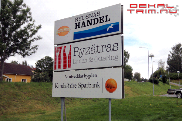 Vi tillverkar byggskyltar av 1,8mm vitlackerad aluminiumplåt. Enkla homogena logotyper och större texter datorskärs i genomfärgad folie. Bilder eller avancerade tryck printas på en 8-års folie och monteras. Samtliga byggskyltar kantviks 25mm enligt svensk standard.
