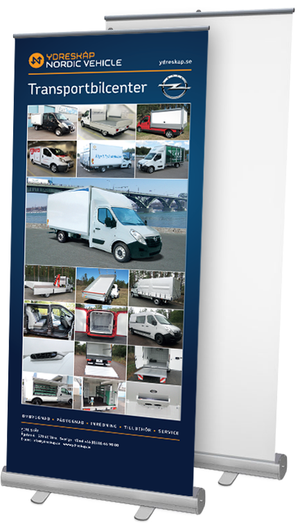 Har du ett färdigt budskap paketerat i en digital fil är steget kort för att få upp det på en rollup. Följ länken här för att ladda upp din fil och beställ direkt. Leveranstid från 3 arbetsdagar.
